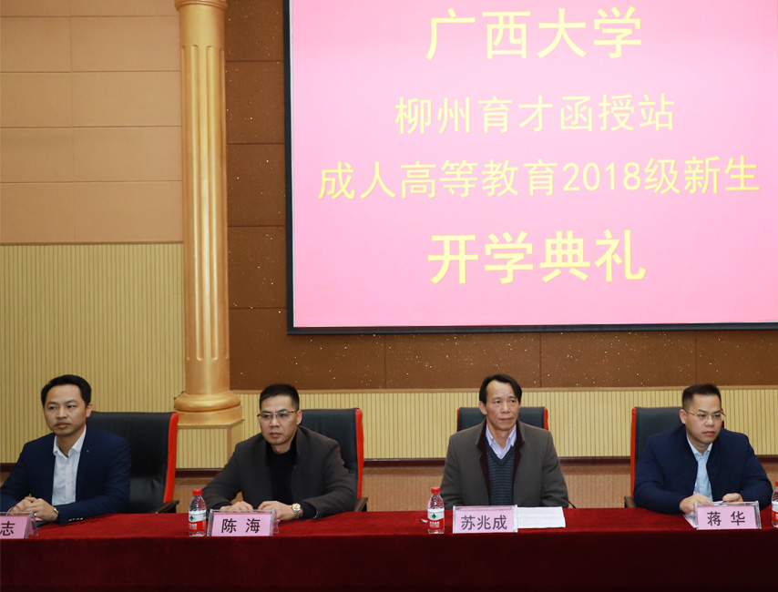 1月7日上午,廣西大學(xué)柳州育才函授站成人高等教育2018級(jí)新生開學(xué)典禮在柳州總部順利舉行。廣西大學(xué)繼續(xù)教育學(xué)院院長(zhǎng)蘇兆成、廣西大學(xué)繼續(xù)教育學(xué)院副院長(zhǎng)陳海、廣西育才教育黨支部書記、函授站站長(zhǎng)蔣華老師、育才教育校長(zhǎng)王志以及來(lái)自柳州各行各業(yè)的160多名新生代表參加了開學(xué)典禮。