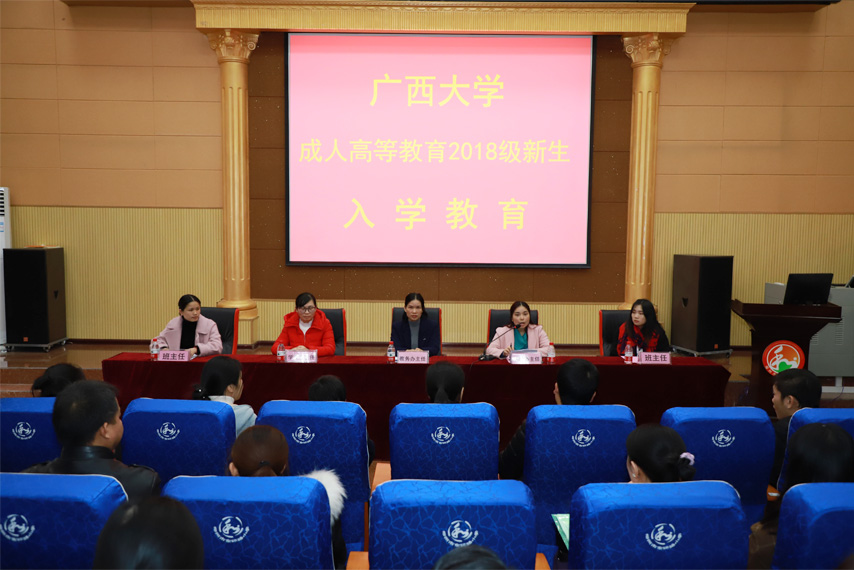 廣西大學(xué)繼續(xù)教育學(xué)院院長(zhǎng)蘇兆成代表學(xué)校向全體成教新生表示熱烈的祝賀,對(duì)長(zhǎng)期以來(lái)對(duì)廣西大學(xué)成教工作辛勤付出的育才教育函授站表示衷心的感謝。他著重介紹了廣西大學(xué)悠久的發(fā)展歷史、雄厚的師資隊(duì)伍建設(shè)等優(yōu)勢(shì)以及近年來(lái)在成人高等繼續(xù)教育方面所取得的成績(jī)。蘇院長(zhǎng)從“四學(xué)”給新學(xué)員上了一堂生動(dòng)的課,即學(xué)不學(xué)?學(xué)什么?去哪里學(xué)?怎么學(xué)?他希望2018級(jí)的新同學(xué),協(xié)調(diào)解決好工作、生活和學(xué)習(xí)三者之間的矛盾,根據(jù)函授教學(xué)的特點(diǎn)和教學(xué)站的教學(xué)要求,合理安排學(xué)習(xí)時(shí)間、提高學(xué)習(xí)效率,學(xué)有所成,在兩年半的學(xué)習(xí)生涯中,全面提高德商、智商和情商,以適應(yīng)社會(huì)發(fā)展的需要。風(fēng)雨砥礪,桃李芬芳。2018年正逢廣西大學(xué)90年校慶,入讀廣西大學(xué)繼續(xù)教育學(xué)院的新生們將與眾多的老校友們一起共慶母校90歲華誕。