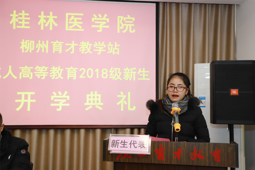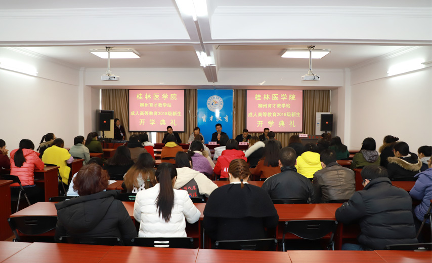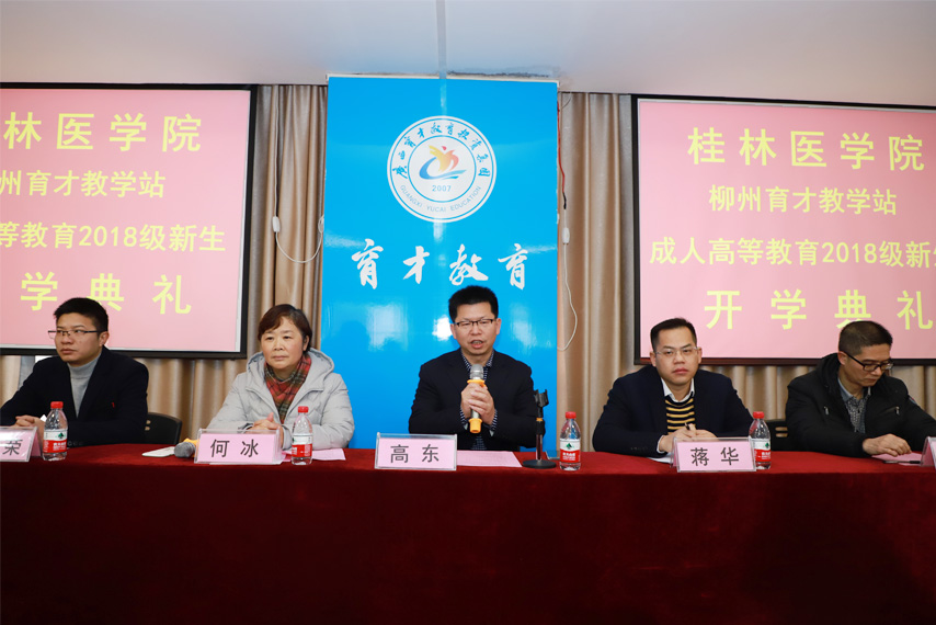 1月13日上午,桂林醫(yī)學(xué)院柳州育才教學(xué)站2018級(jí)成人高等教育新生開學(xué)典禮在柳州總部順利召開。桂林醫(yī)學(xué)院繼續(xù)教育學(xué)院院長高東、桂林醫(yī)學(xué)院繼續(xù)教育學(xué)院副院長何冰、桂林醫(yī)學(xué)院繼續(xù)教育學(xué)院辦公室、招生辦主任呂東南、廣西育才教育黨支部書記、教學(xué)站站長蔣華老師、教學(xué)站副站長蔣仕榮以及來自柳州醫(yī)學(xué)行業(yè)的部分新生代表參加了開學(xué)典禮,典禮由何冰副院長主持。