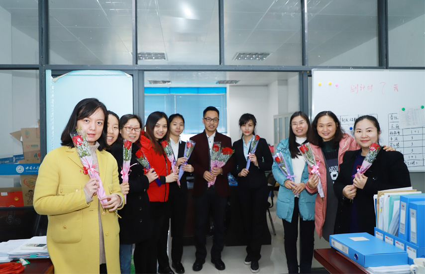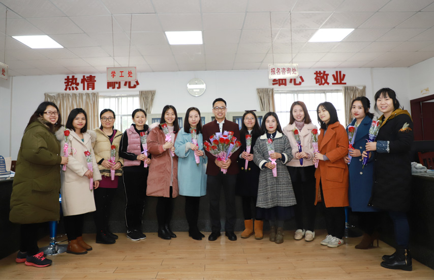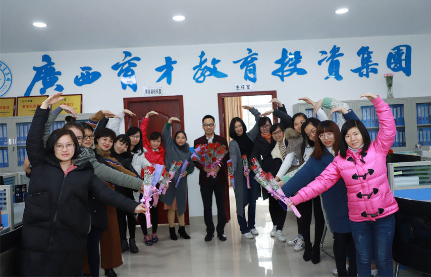 3月8日上午,三八“女神”節(jié)恰逢天公作美,雨后暖陽,育才柳州總部和柳州分校洋溢著節(jié)日的歡樂氣氛。廣西育才教育副總經(jīng)理、工會主席王志代表育才領導班子分別到財務中心、綜合行政中心、教學中心、招生中心、培訓部以及科技大校本部辦公室進行節(jié)日慰問,并為育才教育的每一位“女神”送上玫瑰花和節(jié)日祝福,同時鼓勵育才教育女職工在新的一年里努力工作,快樂生活。各部門的“女神”們則以不同的主題創(chuàng)意合影留念,致青春,也致這個別樣的“女神”節(jié)。