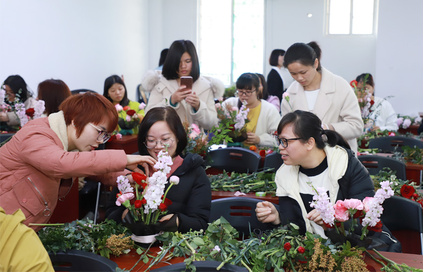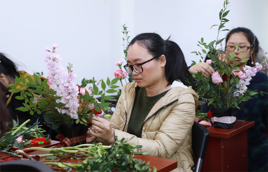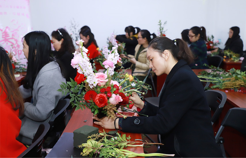 3月9日上午,廣西育才教育在柳州總部舉行了插花花藝培訓暨插花花藝DIY比賽。現(xiàn)場猶如花的海洋,猩紅泡泡、洋牡丹、襯裙紅玫瑰,紅佛玫瑰、粉佳人玫瑰等新品種優(yōu)質花材靜靜地伏在桌上,等待愛花懂花的“女神”來為它們精心剪裁架構,最終成為一件如畫的插花作品蹁躚入世。雖然育才教育的不少女老師都是初次嘗試花卉插花,但在她們的精心手作和不斷完善下,群芳爭艷,佳作頻現(xiàn),本次插花花藝DIY比賽的整體水平也得到了三位插花培訓老師的好評,并評出了一等獎1名,二等獎2名和三等獎3名。