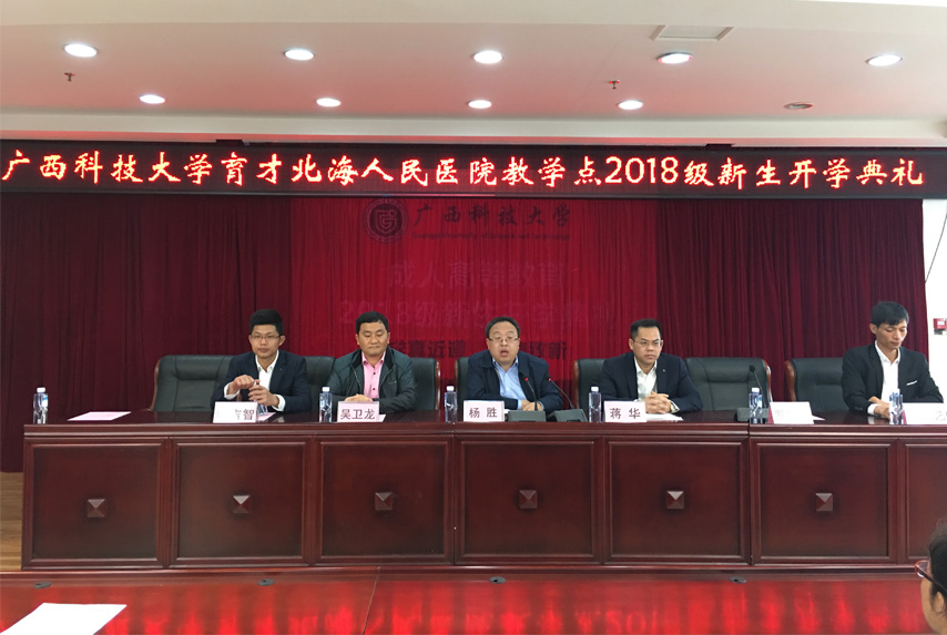 3月17日上午,廣西科技大學育才北海教學點2018級醫(yī)學類成人高等教育新生開學典禮在北海市人民醫(yī)院隆重舉行,廣西科技大學繼續(xù)教育學院副院長楊勝、學歷教育科科長吳衛(wèi)龍出席典禮并作講話,育才教育黨支部書記、董事長、總經(jīng)理蔣華、北海分校校長余獻藝、副校長葉吉智以及60多名新生代表參加了典禮。