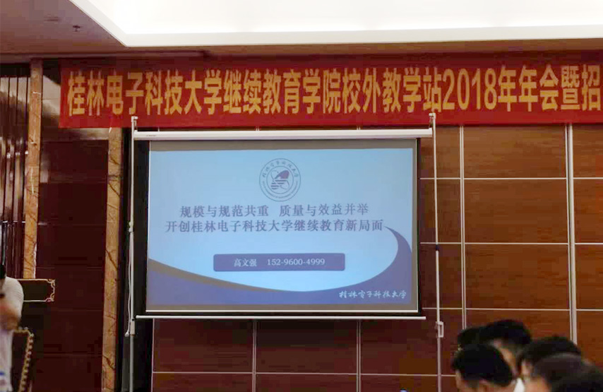 3月31日,桂林電子科技大學(xué)繼續(xù)教育學(xué)院校外教學(xué)站2018年年會暨招生動員會在梧州勝利召開,繼續(xù)教育學(xué)院院長高文強(qiáng)、副院長向榮以及來自各教學(xué)站點的負(fù)責(zé)人參加了會議。會議由副院長劉燕軍主持。
