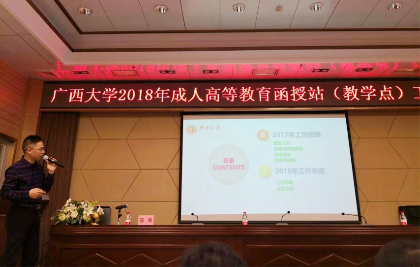 廣西大學(xué)繼續(xù)教育學(xué)院副院長(zhǎng)陳海作2017年招生工作總結(jié)和2018年工作布置