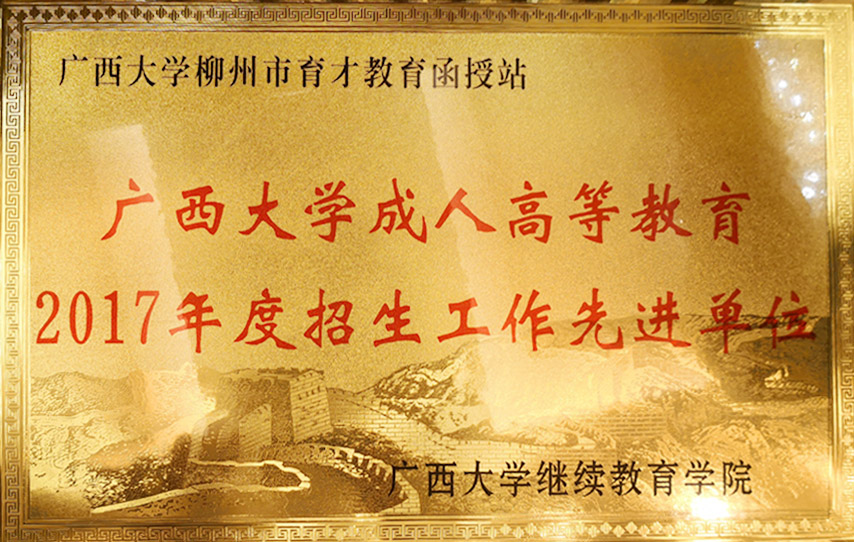 育才教育函授站因工作出色,榮獲了廣西大學(xué)成人高等教育“2017年度招生工作先進(jìn)單位”。據(jù)悉,育才函授站是經(jīng)教育廳批準(zhǔn)備案的廣西大學(xué)校外函授站,連續(xù)三年榮獲了廣西大學(xué)招生工作先進(jìn)單位。