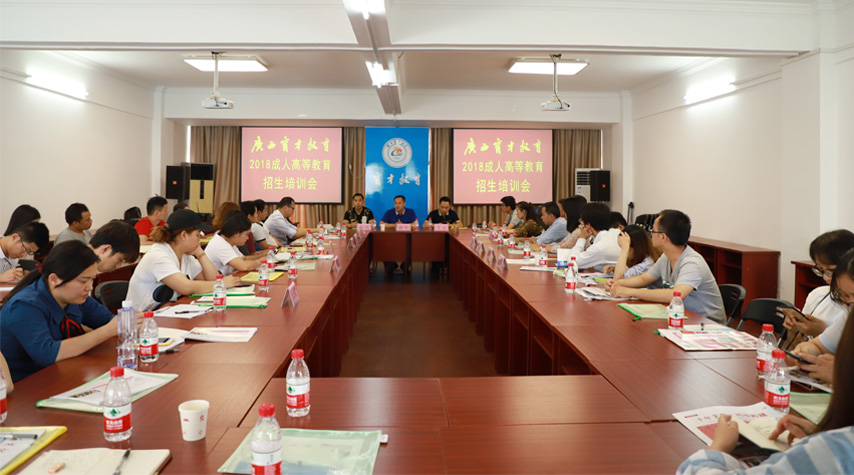 5月16日,廣西育才教育2018年成人高等教育招生培訓(xùn)會在育才柳州總部召開,育才黨支部書記、董事長、總經(jīng)理蔣華、副校長王志、總經(jīng)理助理蔣亮、各區(qū)縣媒體負(fù)責(zé)人和招生人員共40余人參加了培訓(xùn)會。