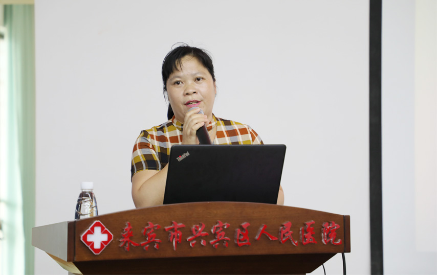 來賓市興賓區(qū)人民醫(yī)院護(hù)理部主任羅愛秀主持講座