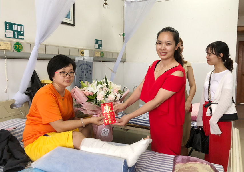 近日,廣西育才教育工會(huì)代表一行探望慰問(wèn)因病在家休養(yǎng)的職工覃慧蘭老師、工傷住院的黃肖曼老師,把慰問(wèn)品和慰問(wèn)金送到她們手中,為她們送去關(guān)懷和溫暖。