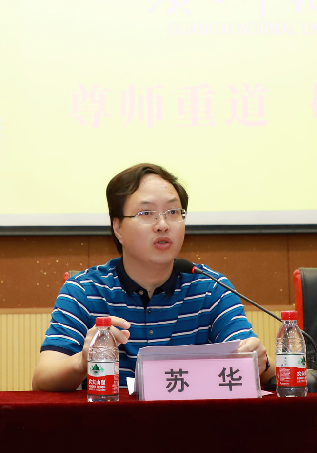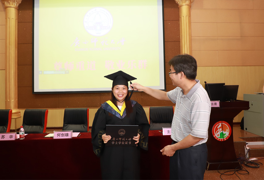 廣西師范大學(xué)繼續(xù)教育學(xué)院學(xué)歷部主任蘇華宣讀學(xué)士學(xué)位授予文件