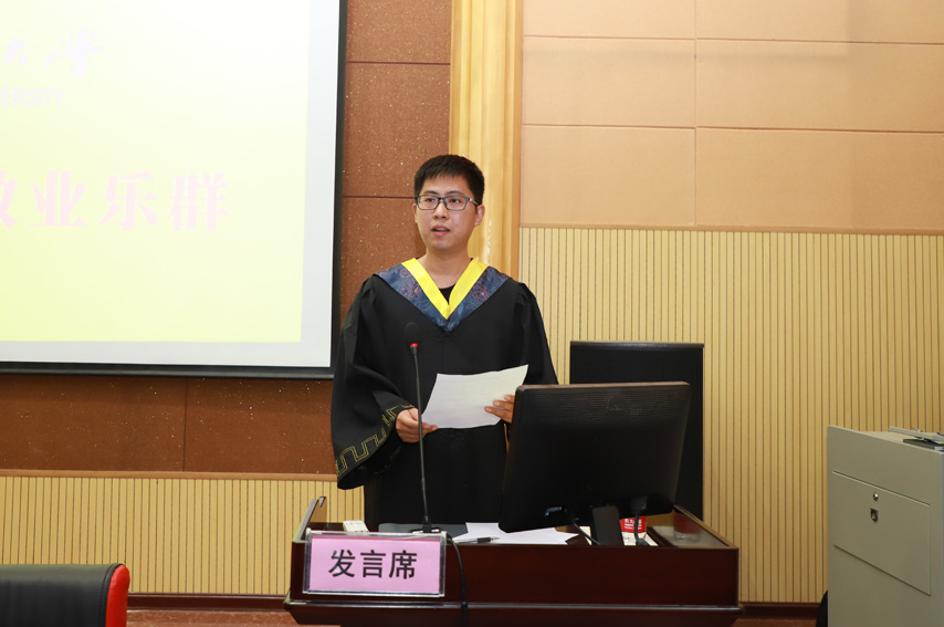 食品科學(xué)與工程專業(yè)本科班的甘行園同學(xué)代表畢業(yè)生上臺發(fā)言,他說,本科畢業(yè)圓了自己學(xué)歷提升的夢想,同時也是一個新的起點,今后,要和同學(xué)們一起在各自的領(lǐng)域發(fā)揮才干,不負(fù)歲月,為母校增輝添彩。
