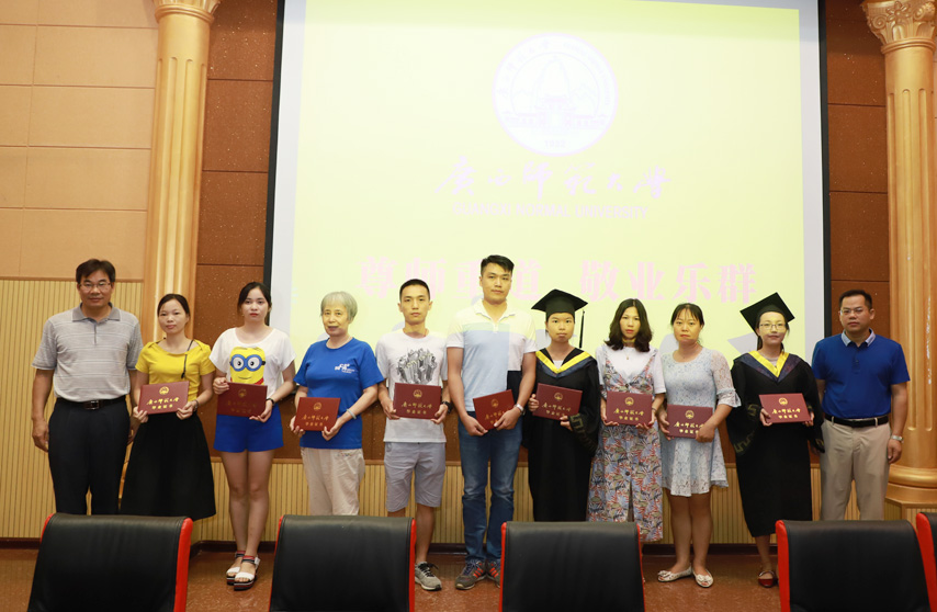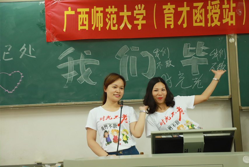 育才函授站負(fù)責(zé)人蔣華老師向2018屆畢業(yè)生表示誠摯的祝賀,對何創(chuàng)雄副院長的到來表示熱烈歡迎,向廣西師范大學(xué)送教上門表示衷心的感謝,他介紹了本屆畢業(yè)生的情況,希望畢業(yè)生學(xué)會感恩,不斷學(xué)習(xí),報效社會,同時關(guān)心母校的發(fā)展,最后提醒畢業(yè)生妥善保管畢業(yè)證和畢業(yè)生檔案。