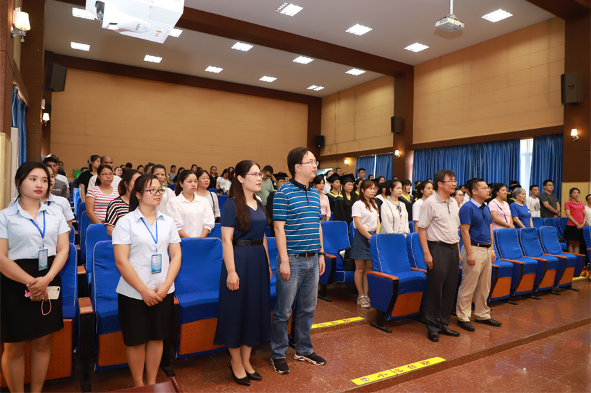 畢業(yè)典禮在莊嚴(yán)的國歌聲中拉開序幕。何創(chuàng)雄副院長代表學(xué)校向順利完成學(xué)業(yè)的畢業(yè)生們表示熱烈的祝賀,勉勵畢業(yè)生在今后要積極進(jìn)取,終生學(xué)習(xí),不僅可以繼續(xù)選擇廣西師范大學(xué)提升學(xué)歷,專升本,本升研,還要學(xué)以致用,讓自己的綜合能力得到進(jìn)一步提高。