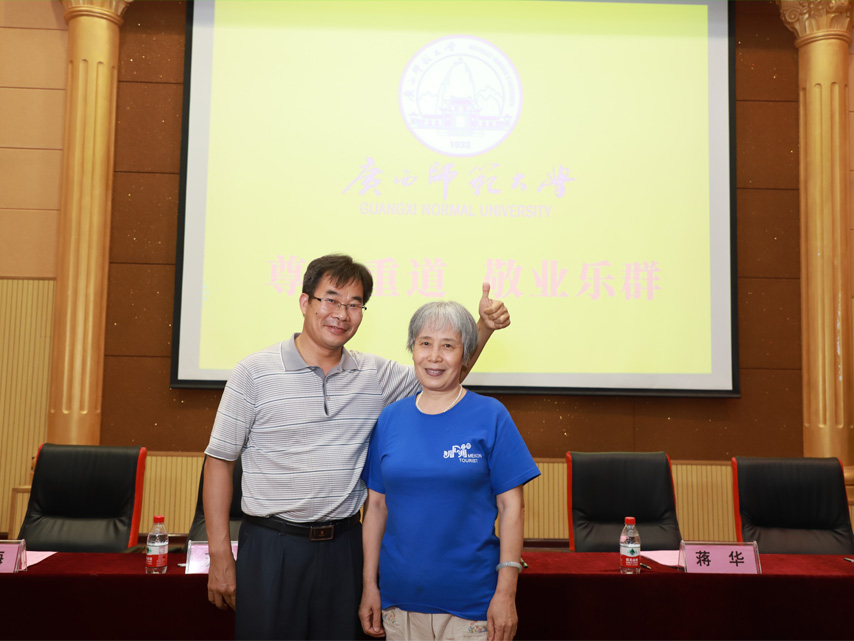 何創(chuàng)雄副院長與55歲的學(xué)員章小蘭合影