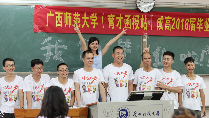 在畢業(yè)典禮現(xiàn)場,現(xiàn)年55歲、一頭銀發(fā)并已退休的2018屆成高漢語言文學(xué)專業(yè)本科畢業(yè)生章小蘭,成為活到老學(xué)到老的榜樣。11年來,廣西育才教育專注于打造成人高等教育公共服務(wù)平臺,以良好和高效的服務(wù),讓各個年齡段、有持續(xù)學(xué)習(xí)和學(xué)歷提升需求的人群得到了滿足。