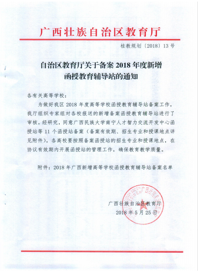 近日,廣西教育廳公布了2018年度廣西新增函授教育輔導(dǎo)站備案結(jié)果的通知,育才教育函授站因條件符合要求,新增備案成為桂林醫(yī)學(xué)院校外輔導(dǎo)站。