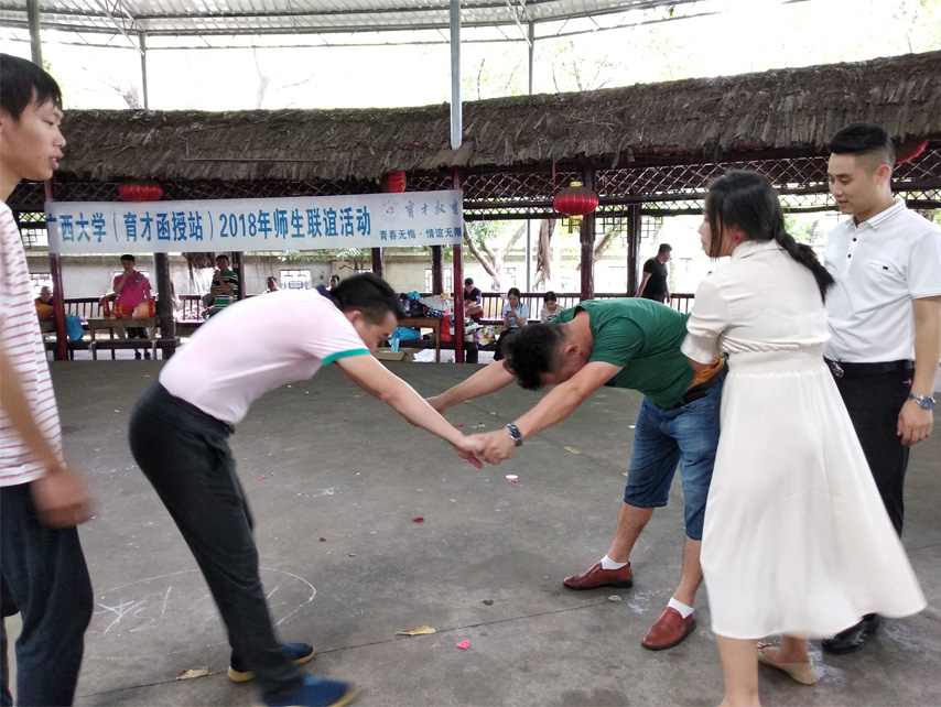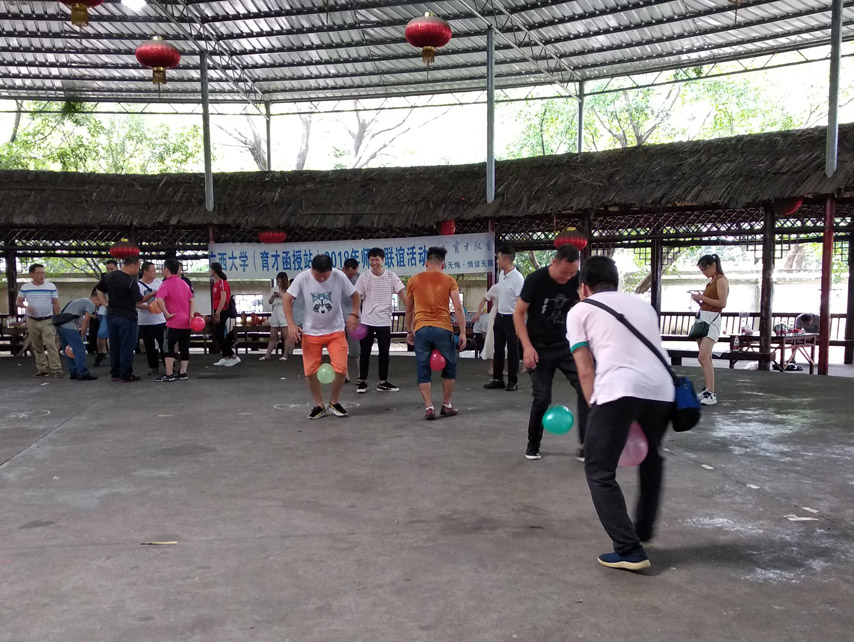 青春無悔,情誼無限。7月8日,2018年春學(xué)期廣西大學(xué)師生聯(lián)誼活動(dòng)在柳州萬聚山莊順利開展,70余名師生參加了活動(dòng)。本次活動(dòng)由廣西大學(xué)育才教育函授站組織,活動(dòng)內(nèi)容包括歡樂聚餐、趣味游戲、聯(lián)誼交流等環(huán)節(jié)。趣味游戲環(huán)節(jié)設(shè)置了丑小鴨賽跑、接力脫衣穿衣、心有靈犀猜成語、九人十足游戲,其中各個(gè)游戲的懲罰環(huán)節(jié)成為現(xiàn)場活動(dòng)的亮點(diǎn)和笑點(diǎn)。師生齊上陣,既有既當(dāng)裁判又當(dāng)運(yùn)動(dòng)員“欲玩還羞”的老師,又有多才多藝的學(xué)生主持人,還有足以“走紅抖音”的“戲精上身”搞笑片刻。在這個(gè)火熱的盛夏,在這個(gè)春學(xué)期期末的課余時(shí)間里,青春寫在同學(xué)們的臉上,展現(xiàn)在師生之情的良好氛圍中,一起悅享生活,攜手進(jìn)步。