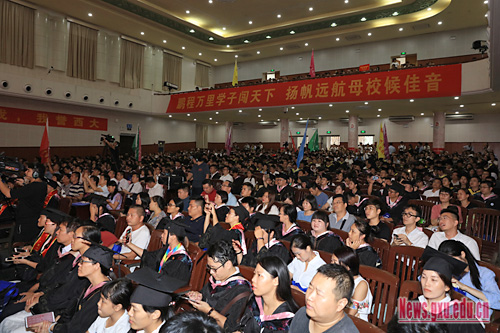 學(xué)院共有4200多名2018屆成人高等教育畢業(yè)生獲得學(xué)士學(xué)位,在宣讀學(xué)位授予文件之后,由廣西大學(xué)黨委常委、副校長(zhǎng)羅廷榮教授為獲得學(xué)士學(xué)位的畢業(yè)生代表逐一撥穗正冠執(zhí)“撥穗禮”并頒發(fā)學(xué)位證書(shū)?;顒?dòng)在全場(chǎng)奏唱廣西大學(xué)校歌中結(jié)束。