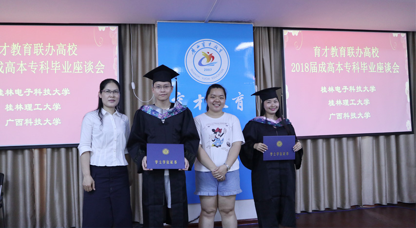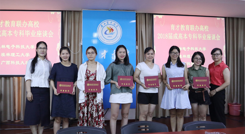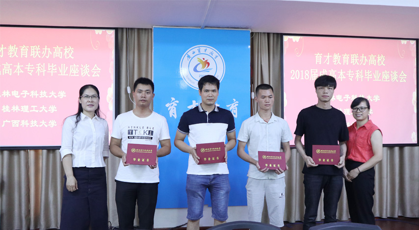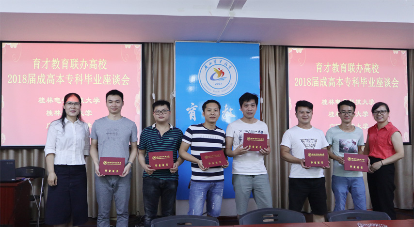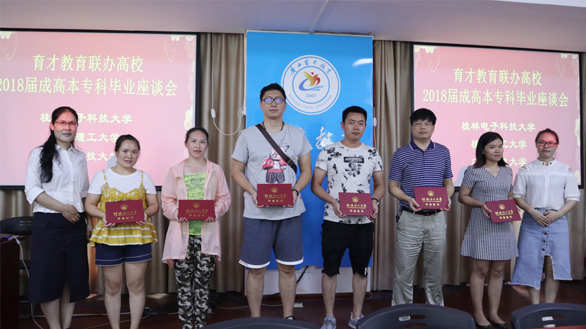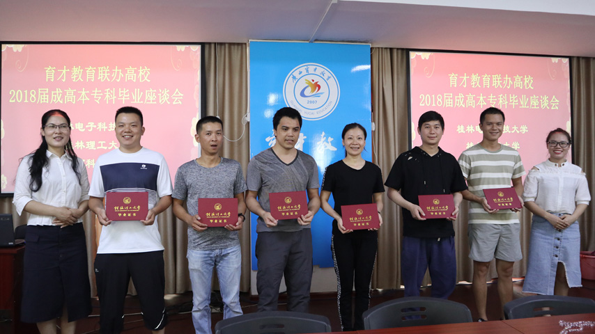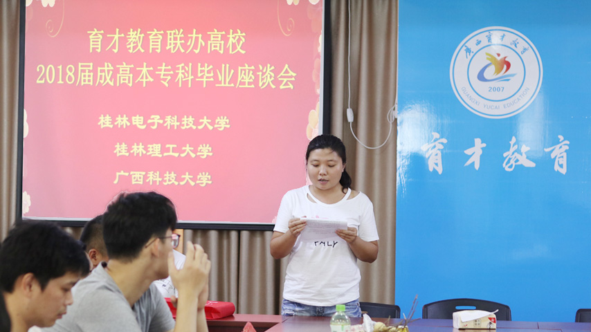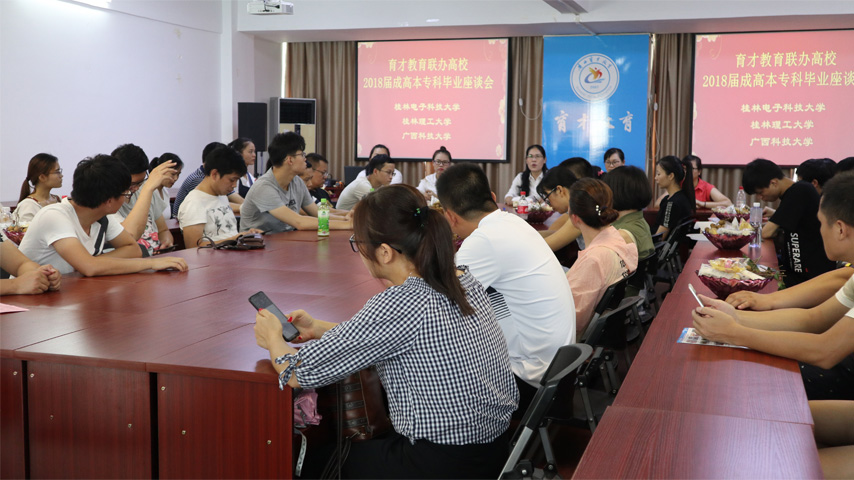 7月22日,育才教育在柳州總部召開聯(lián)辦高校2018屆成高本??飘厴I(yè)生座談會,桂林電子科技大學(xué)、桂林理工大學(xué)、廣西科技大學(xué)等高校的部分畢業(yè)生代表參加了座談會。