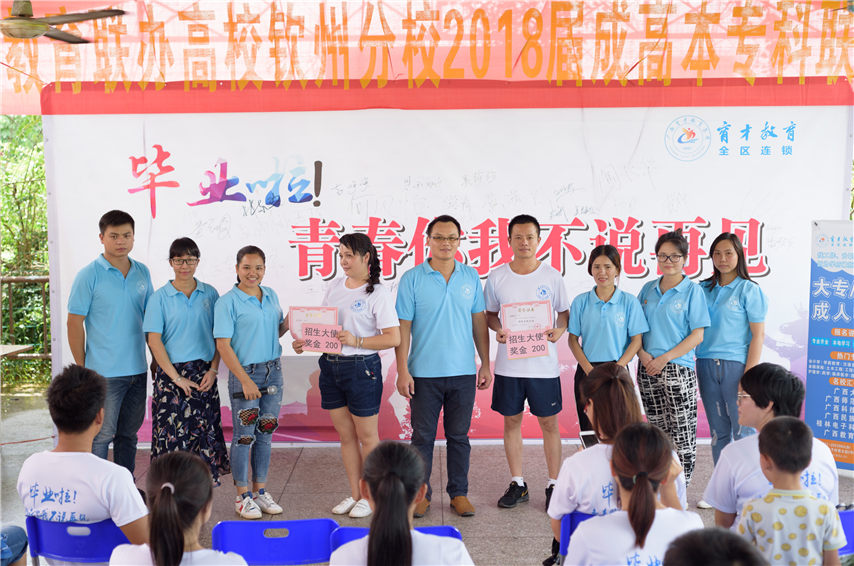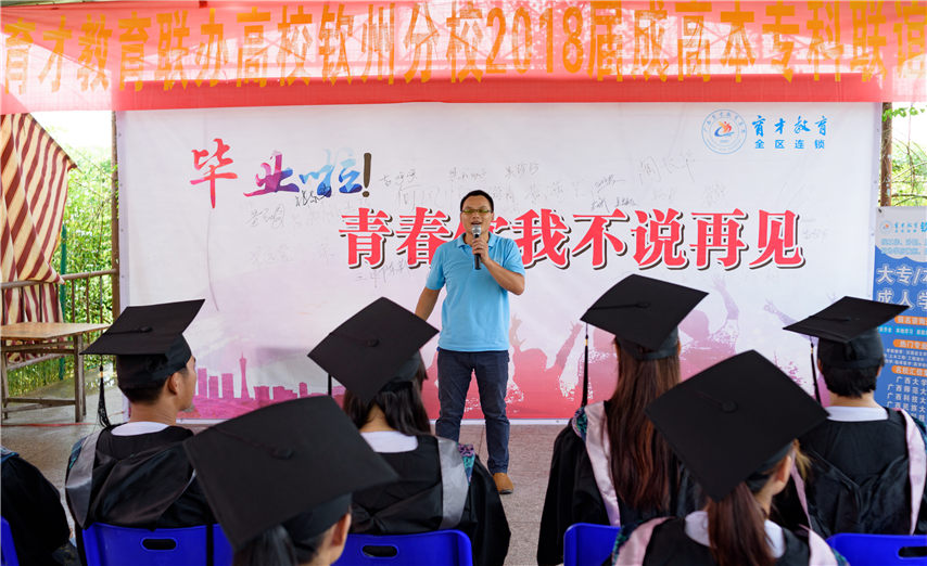 8月4日,育才教育聯(lián)辦高校欽州分校2018屆成高本??飘厴I(yè)典禮順利舉行。典禮結(jié)束后,欽州分校精心策劃組織了一場豐富多彩的師生聯(lián)誼活動,以多姿多彩的方式歡慶和紀(jì)念這一個特殊的時刻,來自育才聯(lián)辦廣西大學(xué)、廣西師范大學(xué)、廣西教育學(xué)院、桂林電子科技大學(xué)、湖南中醫(yī)藥大學(xué)的畢業(yè)生代表參加了活動。