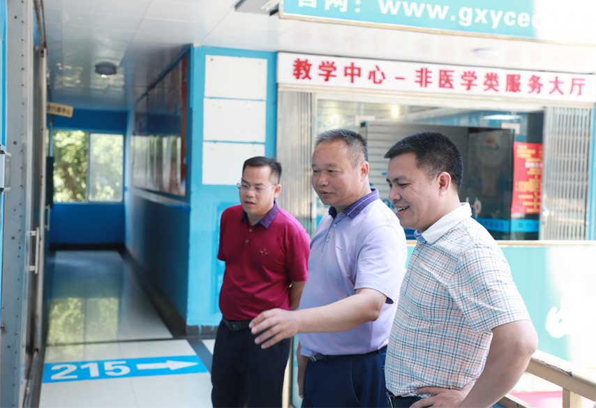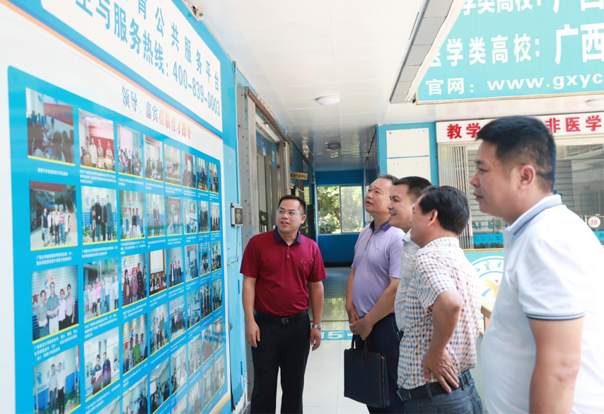 8月9日,廣西教育學(xué)院黨委副書記趙嘯海、成人教育學(xué)院院長周日南一行4人到育才柳州總部考察指導(dǎo)工作。