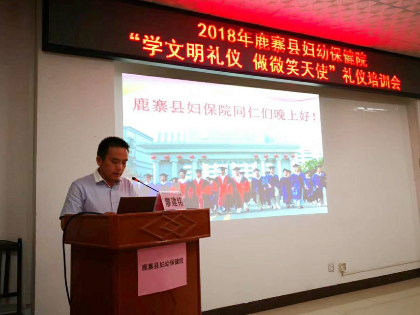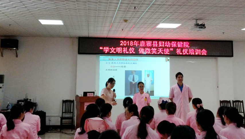 8月28-30日,鹿寨縣婦幼保健院“學(xué)文明禮儀、做微笑天使”禮儀培訓(xùn)會(huì)暨鹿寨鎮(zhèn)中心衛(wèi)生院醫(yī)共體禮儀培訓(xùn)在該院會(huì)議室舉行,首場(chǎng)培訓(xùn)會(huì)由國(guó)家高級(jí)禮儀培訓(xùn)師、廣西醫(yī)科大學(xué)繼續(xù)教育學(xué)院院長(zhǎng)趙邦教授主講,鹿寨縣衛(wèi)生和計(jì)劃生育局書記廖建銘出席會(huì)議并致詞,會(huì)議由鹿寨縣婦幼保健院院長(zhǎng)胡開明主持。本次培訓(xùn)會(huì)為期三天,由柳州市育才職業(yè)培訓(xùn)學(xué)校承辦。